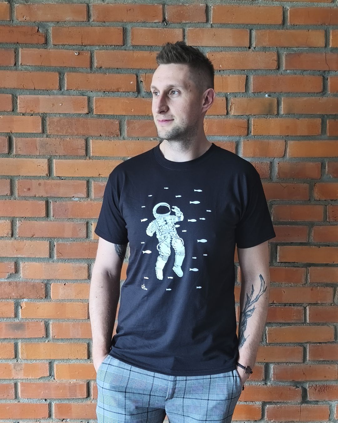 Wyrusz w kosmiczną podróż z naszym czarnym T-SHIRTEM „Kosmiczna Ławica”! Ten zabawny nadruk przedstawia samotnego astronautę, dryfującego w bezkresnym kosmosie… otoczonego ławicą spokojnie płynących ryb! To zaskakujące i humorystyczne połączenie z pewnością wyróżni Cię z tłumu i wywoła uśmiech na twarzach innych.